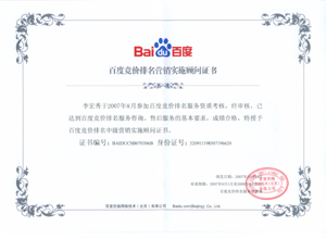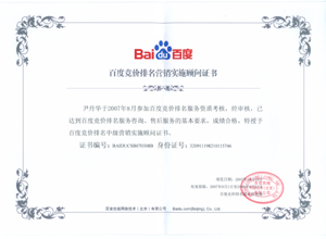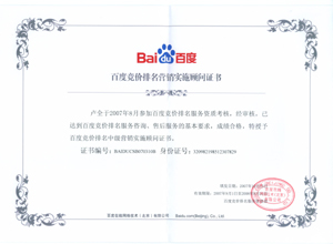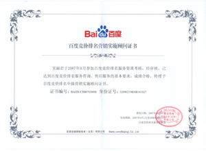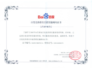 鹽城思科網絡工程有限公司作為百度鹽城地區(qū)總分銷商,在2007年度參加百度競價排名服務資質考核中,經過公司全體員工們的共同努力,再創(chuàng)佳績,其中通過中級服務認證考核8人,3人優(yōu)秀,通過率達95%,被全球最大中文搜索引擎——百度在線(北京)有限公司再次授權百度競價排名鹽城地區(qū)唯一客戶服務中心。盡善盡美的售后、全心全意的服務,思科人將用十二分的熱忱等待您的惠顧,共創(chuàng)新紀元!
