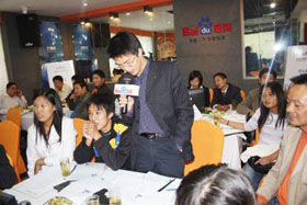 秋高氣爽,舒適宜人。2008年10月24號(hào)下午,“營(yíng)銷加速度”——百度營(yíng)銷專家培訓(xùn)會(huì),在美麗的丹頂鶴之鄉(xiāng)鹽城拉開了帷幕。在思科百度商務(wù)會(huì)所里,客戶們齊聚一堂,氣氛甚是融洽。本次會(huì)議真可謂陣容強(qiáng)大,百度客服部經(jīng)理張鵬先生與百度渠道部經(jīng)理晟皞先生兩大經(jīng)理齊上陣,再加上思科資深網(wǎng)絡(luò)營(yíng)銷專家、客服部經(jīng)理盧全女士精彩而實(shí)用的演講,現(xiàn)場(chǎng)客戶個(gè)個(gè)大飽耳福,獲益非淺。會(huì)議開場(chǎng)主持人帶領(lǐng)大家玩默契火拼游戲,破冰熱場(chǎng),大家玩得不亦樂(lè)呼!短暫的游戲后,與會(huì)嘉賓都專心致志的聽著張鵬經(jīng)理、盧全經(jīng)理精彩的演講。在有獎(jiǎng)問(wèn)答環(huán)節(jié),客戶們更是奮勇?lián)尨?,把整個(gè)會(huì)議推向了高潮。