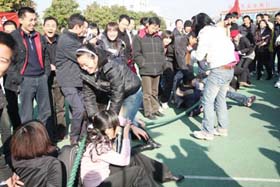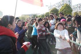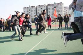 寒風(fēng)簌簌,陽(yáng)光絢爛。在2008年12月6日這個(gè)寒冷而富有激情的日子里,我司第一屆冬季運(yùn)動(dòng)會(huì)火熱開展。為了充分調(diào)動(dòng)大家的激情,此次比賽項(xiàng)目的策劃可謂煞費(fèi)苦心。除了籃球賽、4*100接力賽、100米短跑、乒乓球比賽、等傳統(tǒng)比賽項(xiàng)目外,新增了很多趣味比賽項(xiàng)目如:趕小豬、兩人三足跑、夾球跑……大家玩得不亦樂(lè)乎!為了充分調(diào)動(dòng)大家積極性,我們?yōu)檫\(yùn)動(dòng)健兒們準(zhǔn)備了豐富的獎(jiǎng)品,有棉被、電蒸鍋、電熱水捂、手套、圍巾、領(lǐng)帶、保溫杯、指套裝、收音機(jī)、筆筒等等。我們還特設(shè)抽獎(jiǎng)環(huán)節(jié),每項(xiàng)比賽的前三名都會(huì)獲得一張“金卡”,拿著金卡可以抽獎(jiǎng),中獎(jiǎng)率為100%,未得金卡的選手們也將得到一份精美禮品。