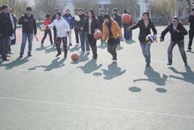 趕小豬游戲中,我們的女同胞們拍起籃球來(lái)個(gè)個(gè)英姿颯爽