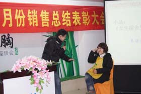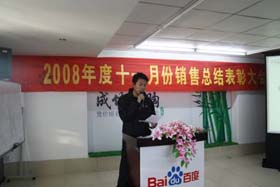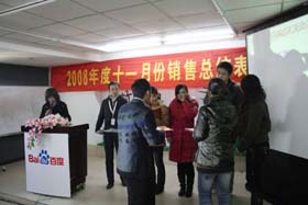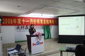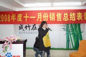 寒流襲擊,天氣驟冷,凍結(jié)不了我們熾熱的冠軍夢(mèng)。2008年12月6日上午,我司11月銷售總結(jié)大會(huì)在公司7樓會(huì)議室開展得如火如荼。此次會(huì)議實(shí)現(xiàn)了從純娛樂向分享經(jīng)驗(yàn)?zāi)J降霓D(zhuǎn)變,除了常規(guī)的歌曲表演、小品表演、“金典故事”講述外,我們更偏重于大家銷售經(jīng)驗(yàn)、工作心得及個(gè)人見解的分享。一個(gè)人就是一個(gè)哈姆雷特,我們的銷售精英們個(gè)個(gè)經(jīng)驗(yàn)豐富,演講起來一點(diǎn)也不遜于王安之等高級(jí)培訓(xùn)講師,相比之下更具有實(shí)用價(jià)值,更貼近我們的生活。