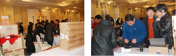 下午兩時許,企業(yè)家們陸續(xù)到來,簽到、簽名、進(jìn)入會場。會前,企業(yè)家們對禮品兌換區(qū)產(chǎn)生了極強(qiáng)的興趣,大家顧不上入座就紛紛涌向咨詢臺詢問促銷方案,續(xù)費(fèi)、領(lǐng)禮品、兌積分,忙個不亦樂乎。