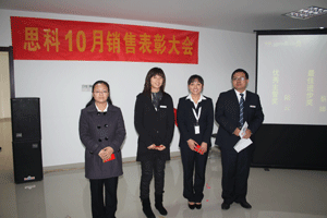 11月7日下午,思科10月銷售表彰大會在鹽城國際軟件園5樓召開。這次我們以別開生面的方式開展了這次銷售大會。會議開始,我們并沒有向往常一樣頒發(fā)獎項。在主持人的帶領下,我們玩了大量的團隊游戲,游戲提高了我們的熱情,大家都興致高漲,不僅放松了一個月以來緊張的心情,也給我們帶來了無比的快樂。