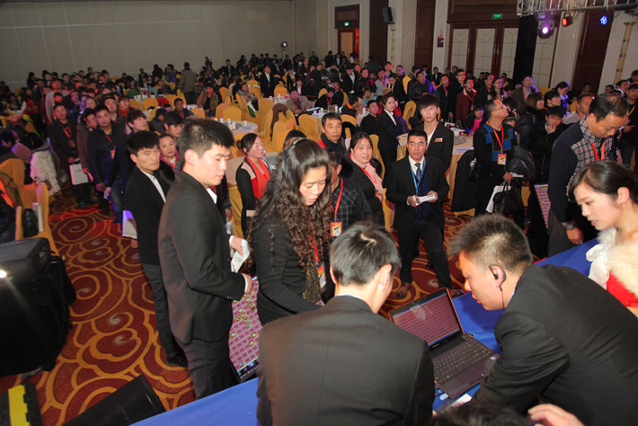 簽到區(qū)一片繁忙,工作人員為其核對(duì)信息